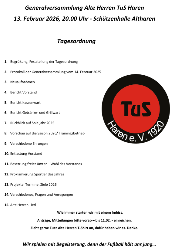 Herlich Willkommen Jungs in den Alten Herren TuS Haren!!!