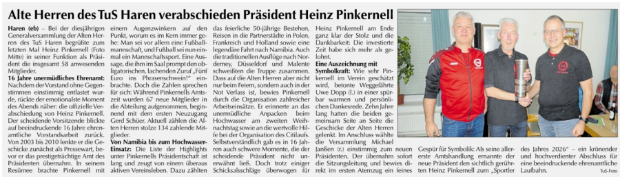 Heinz Pinkernell gab sein Amt nach 16 engagierten und erlebnisreichen Jahren ab. Er selber meinte, es wäre Zeit einem Jüngeren Platz zu machen.